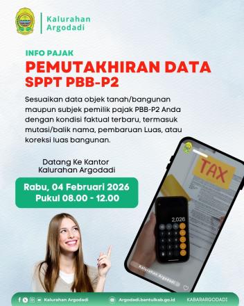 Kegiatan ini akan dilakukan pada Rabu, 04 Februari 2026 bertempat di Kantor Kalurahan Argodadi.